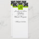 Programme de mariage avec modèle Damask et monogramme. Design de disposition par Elke Clarke©2010. Carte graphique sous licence. Customisez avec vos noms monogrammes et couleurs mariages. Ajoutez toutes vos informations de cérémonie de mariage et de service religieux au verso de la carte en utilisant les invites de menu faciles à utiliser de Zazzle.