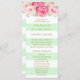 Programme de mariage personnalisé en vert menthe pastel clair et rayures blanches motif avec fleurs d'aquarelle rose vintage. Customisez ces cartes de cérémonie avec votre propre texte.