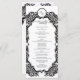 Ce programme de mariage moderne présente un design de cadre noir et blanc audacieux avec des fioritures élégantes en damas, créant un look raffiné et stylé. La couverture met en avant tous les détails de la cérémonie dans une mise en page épurée, tandis que le verso centre les noms des mariés à l'intérieur d'un cadre décoratif. Son élégance moderne associée au contraste intemporel noir et blanc en fait un choix parfait pour les mariages formels, garantissant à la fois sophistication et présentation mémorable.