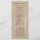 Programme de mariage à monogramme sur toile de lin