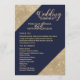 Élégant, chic et glamour, coins à paillettes dorées imprimées de faux strass et écriture dorée sur fond bleu marine, programmes de mariage. Ce design classique et sophistiqué est parfait pour le couple trendy et élégant qui se marie. Personnalisez avec votre propre message sur le devant ainsi qu'un monogramme personnalisé au dos. Conception d'impression photo personnalisée.
