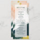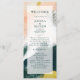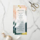 Ce programme de mariage abstrait coloré est parfait pour votre mariage boho moderne unique. Peint à la main avec des marques texturées de vert émeraude foncé, de pêche et de moutarde, le tout recouvert d'un carré transparent minimaliste, il est sûr de donner à votre occasion une sensation bohème simple mais rustique.