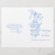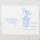 Joli couple d'oiseaux en ligne dessin graphique d'une cage d'oiseau ouverte accrochée à un arbre de printemps fleuri avec des coeurs. Mariage moderne chic design moderne partie de la cage d'oiseau romantique mariage fixe ensemble. Jolies teintes pastel bleu et bleu aqua sur un arrière - plan blanc. Modifiez ce programme de mariage avec votre nom, dates, libellé de la cérémonie, accompagnateurs de mariage et merci. Un programme simple mais élégant remplace simplement l'exemple de texte par vos informations de mariage et plie les programmes en deux à la livraison. Dessin unique et design par Sarah Trett.