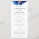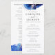 Ce programme de mariage élégant et moderne présente des textures d'aquarelle de luxe et un design contemporain. Sur le devant, une peinture à l'encre d'alcool dans les tons bleu nuit et or apparaît en haut du programme. Ci-dessous, un modèle personnalisable inclut vos noms, la date du mariage et les détails de la cérémonie. Le fond du programme est décoré avec plus d'aquarelle, et comprend un modèle avec les membres de votre mariage. Si vous avez de la difficulté à customiser le modèle, n'hésitez pas à contacter le concepteur pour obtenir de l'aide : sarah@dulcedahlia.com. Trouvez la papeterie mariage et le décor mariage correspondants dans notre collection de mariages Mystical Modern Ink Wash.