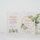 Un programme de mariage plié, combinant plusieurs tendances : géométrique, marbre et métallisé (or).