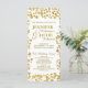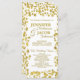 Ce style de programme de mariage populaire est à la fois moderne et amusant avec des confettis d'or dansant sur la carte. L'arrière - plan blanc peut facilement être changé à n'importe quelle couleur que vous aimez. Vous pouvez également changer les couleurs de police et de police pour faire le programme parfait qui célèbre votre journée la plus spéciale dans le style. Organisez un événement merveilleux !