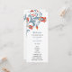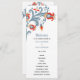 Inspiré par le style de peinture traditionnel norvégien rosemaling, ce programme de mariage présente un motif de bordure circulaire tourbillonnant bleu avec des fleurs orange, grises et rouges sur fond blanc. Les parties textuelles de cette invitation sont personnalisables. Le recto de la carte présente l'ordre des événements tandis que le verso de la carte met en valeur le cortège de mariage. Cet article fait partie d'une collection, veuillez visiter notre magasin Borghild's Boutique pour d'autres articles assortis.