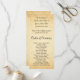 Un programme de mariage avec un design arrière - plan imprimé dans le style de vieux papier vintage, conçu pour ressembler à un faux motif parchemin. L'arrière - plan est un imprimé motif dans des tons beige jaunâtre / tan. Il y a du texte noir élégant qui peut être personnalisé.