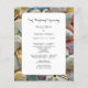 Programmes de cérémonie de mariage sur la petite plage. De jolis coquillages recouvrent le bord et tout le dos de ce modèle facile à utiliser. Ajoutez votre propre texte pour un mariage au bord de la mer.