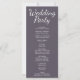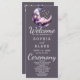 Présentez notre programme de mariage nocturne enchanté, un ajout captivant à votre cérémonie de mariage sur le thème céleste. Le programme est composé d'un arrière - plan sophistiqué gris fumée, préparant le terrain pour une lune moderne et étonnante bleue et violet croissant. Ornée de nuages bleu éthérés et violets, la lune du croissant est agrémentée d'une délicate arrosée d'étoiles dorées jaunes, dorées et roses, créant un chef-d'oeuvre céleste qui exsumera enchantement et mystère. Au verso du programme, vous trouverez une liste de vos membres estimés de mariage, chaque nom immortalisé en reconnaissance pour leur rôle important dans votre journée spéciale. Le texte du programme est minutieusement présenté dans une combinaison harmonieuse de noir et de gris, principalement en utilisant une simple police de bloc pour la clarté et la facilité de lecture. Les mots "Welcome", "Ceremony" et "Wedding Party" sont élégamment scénarisés dans une police décorative, ajoutant une couche supplémentaire de grâce et de sophistication au design. Notre programme de mariage nocturne enchanté est idéal pour les couples à la recherche d'un thème mariage vraiment unique, céleste et mystique. Avec sa palette de couleurs cosmique et ses élégantes polices de caractères, ce programme guide non seulement vos invités mais sert aussi de gardien chéri, capturant l'ambiance magique d'une soirée étoilée. Plongez votre mariage dans les merveilles cosmiques de l'univers avec le programme de mariage de nuit enchanté, un témoignage de votre histoire d'amour au milieu des étoiles.