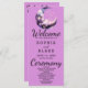 Présentant notre programme Enchanted de mariage Twilight, un mélange captivant d'allure céleste et d'élégance moderne conçu pour insuffler à votre cérémonie mariage une atmosphère enchanteresse. Le programme est doté d'un arrière - plan de chardon violet hypnotisant, offrant un cadre idéal pour une lune de croissant bleu et violet frappante. Ornée de nuages bleu éthérés et violets, la lune est parsemée d'un ensemble céleste d'étoiles dorées jaunes, dorées et roses, créant une ambiance vraiment magique. Au verso du programme, vous trouverez la liste des membres de votre mariage, chaque nom célébré pour leur rôle essentiel dans votre journée spéciale. Le texte du programme est minutieusement présenté dans une combinaison harmonieuse de noir et de gris, principalement en utilisant une police de bloc simple pour la clarté et la lisibilité. Les mots "Welcome", "Ceremony" et "Wedding Party" sont élégamment scénarisés dans une police décorative, ajoutant une touche de sophistication au design. Notre programme de mariage crépusculaire est adapté aux couples à la recherche d'un thème mariage vraiment unique, céleste et mystique. Avec sa palette de couleurs magiques et ses polices de caractères élégantes, ce programme guide non seulement vos invités mais sert aussi de gardien chéri, capturant l'essence mystique d'une nuit éclairée par la lune. Élevez votre mariage dans le royaume de l'enchantement avec le programme Enchanted de mariage crépusculaire, un témoignage de votre histoire d'amour au milieu des merveilles célestes de l'univers.