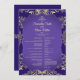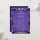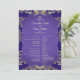 Ce programme de mariage allie charme royal et beauté intemporelle, avec un riche arrière - plan violet orné de détails damassés dorés ornés. Le côté avant présente le programme complet du mariage dans un élégant design bordé d’or, tandis que le côté arrière met en valeur les noms du couple encadrés par un motif en damas doré circulaire. Le mélange éclatant de violet et d'or crée un look royal et luxueux, parfait pour des célébrations mariages formelles et mémorables.