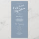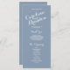 Une typographie blanche élégante sur un fond bleu poussiéreux fait ressortir ces élégants programmes de mariage modernes. Conception de Elke Clarke © Personnalisez la couleur de fond et toutes vos informations personnelles pour créer un programme de mariage luxueux que vos placeurs peuvent distribuer à vos invités à l'entrée de l'église ou lorsqu'ils sont assis à l'endroit où la cérémonie aura lieu. Cela aide les gens à suivre la cérémonie, mais sert également de souvenir pour vos invités. Vous pouvez utiliser les champs de modèle pour remplir les informations suggérées sur votre groupe de mariage et l'ordre de service et le message de remerciement ou sélectionner "personnaliser" et utiliser le menu d'édition pour modifier l'espacement du texte, les polices, les couleurs comme vous le souhaitez pour créer vos propres programmes de mariage.