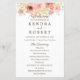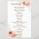 Ce beau programme de mariage présente des roses roses corail rehaussées de feuilles et de branches dorées. Le texte marron foncé se coordonne parfaitement avec les motifs floraux roses et dorés. La couverture présente les noms des mariés, la date et le lieu du mariage, ainsi que les détails de la cérémonie. Au dos figurent les noms des participants au mariage. Tous les détails, y compris la couleur du texte, sont entièrement personnalisables. Veuillez noter : les feuilles dorées ne sont pas en dorure et ne seront pas brillantes sur le programme imprimé.