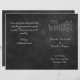Les graphismes vintages mettent l'accent sur le type rétro de ce programme de mariage sur un arrière - plan de tableau noir illustré. Il fait partie de la collection de Mariages Chalkboard, mais il se coordonnera facilement avec n'importe quelle invitation de tableau de bord. Il est imprimé sur le papier léger du prospectus, de sorte qu'il est facile à plier en deux.