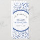 Programme de mariage des motifs feuille bleu Indigo. Ce joli design modèle mariage présente un motif en feuille bleu et votre texte dans un cadre blanc rond avec plan bleu à échalotes.