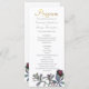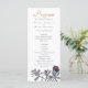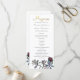Tout le libellé de ce programme de mariage peut être customisé. Le programme fait partie d'une collection d'aquarelle avec feuillage tropical, fleur rouge et faux script d'or. Un design élégant et simple.