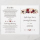 Élégant design romantique avec de magnifiques bouquets floraux à l'aquarelle, des flèches avec des cœurs et des fleurs comme séparateur sur fond blanc ; au dos, un fond bordeaux royal. Utilisez l'outil de personnalisation pour ajouter vos informations. Vous pouvez changer les polices et leurs couleurs, ainsi que la couleur de fond de la page. Pour les articles assortis, veuillez visiter ma collection de mariage floral bordeaux Marsala Blush.