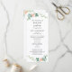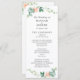Un design à thème fleuri avec fleurs de pêche et feuillage vert. Vous pouvez personnaliser le texte et les couleurs sur ce modèle de programme de mariage.
