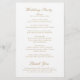 Programme de mariage en or faux élégant avec un design simple et minimaliste avec les noms des mariés dans une police serif traditionnelle et les noms de famille dans un script de calligraphie élégant. Un style classique parfait pour un mariage formel.