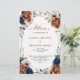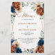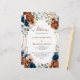 Élégant programme de mariage sur le thème floral terreux bleu marine, terracotta et orange, avec un élégant bouquet de roses, pivoines bleues marine, roses couleur terracotta et feuilles d'eucalyptus vertes. N'hésitez pas à me contacter pour toute aide de personnalisation ou si vous avez besoin d'un autre produit avec ce design.