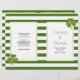 Couvet irlandais et rayures blanches et vertes Saint Patrick's Day plié cérémonie mariage et programme de fête. Les éléments de ce modèle de programme de mariage sont le motif rayé vert et blanc et le shamrock aux coins d'un cadre blanc avec votre texte. Choisissez seulement le papier de valeur pour ce programme car il se plie bien et le plier en deux manuellement.