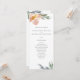 Ce programme de mariage botanique élégant présente des feuilles et des fleurs aquarelles peintes. Les fleurs et la verdure sont réalisées dans des tons orange, vert et gris légers et discrets sur un fond blanc croquant. Les noms des mariés et le calendrier du programme de mariage sont présentés dans une police sans empattement moderne et classique. Ce design recto-verso est un choix élégant et bohème chic pour les mariages de printemps, d'été, d'automne ou d'hiver. Conçu par Victoria de VG Invites. Pour en voir plus, visitez www.zazzle.com/vginvites