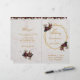 Un programme de mariage plié très moderne, combinant plusieurs tendances : géométrique, marbre, métallisé (or) et quelques polices spéciales.