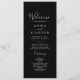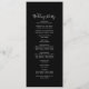 Ce programme de mariage minimal en coordonnées noires est parfait pour un mariage moderne. L'élégant design boho sophistiqué présente un noir foncé solide et une atmosphère bohème moderne. Coordonnées avec la collection Moody Purple Blooms de Fresh & Yummy Paperie. Inclure les noms du couple, la date et l'emplacement du mariage, le message de remerciement, l'ordre de service, la fête de mariage et un mémorial optionnel "en mémoire d'amour".