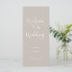 Programme de mariage avec script de calligraphie manuscrit moderne en beige taupe neutre, customisez le dos avec vos propres informations.