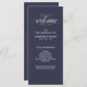 Ces programmes de mariage simples et élégants présentent un faux diamant en or rose et une typographie moderne sur un fond bleu de minuit.