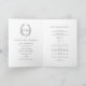 Programme de mariage à simple pli pour l'art botanique à feuille ovale gris foncé et blanc dessiné à la main. Design simple de feuilles entourant vos propres initiales monographiques en gris et blanc. Autres couleurs et articles mariages correspondants disponibles. © Dessin et dessin de la feuille d'origine par Sarah Trett pour www.mylittleedenweddings.com sur zazzle.