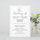 Une élégance intemporelle dans tous les détails. Ce Simple Script Black and White Wedding Program (Programme de mariage noir et blanc) propose des polices serif classiques et des polices de caractères gracieuses sur un arrière - plan blanc propre. Parfait pour les mariages minimalistes, modernes ou à cravates noires, ce programme recto verso est entièrement personnalisable avec les détails de votre cérémonie, fête de mariage et une note de remerciement sincère. Une tenue sophistiquée que vos invités chériront.