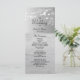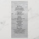 Élégant boho moderne, programme de mariage en bois rustique noir et blanc avec dentelle argentée vintage et lumières à cordes.