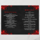 © Sunny Mars Designs - Floral Hibiscus : Rouge sur tableau noir Programmes de mariage pliés - Moderne, tendance, stylisé, personnalisable programme de mariage imprimé sur mesure modèle avec rouge foncé, pourpre, bordeaux, rubis ou marron tourbillonnant design floral hibiscus tropical contre un arrière - plan de tableau noir ou de tableau de craie. Plier ce programme en deux pour en faire un livret élégant. Personnalisez-le en ajoutant les détails de votre mariage et de la cérémonie du mariage.