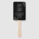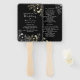 Élégants, boho, chic, éventails à main de programme de mariage noir vintage avec dentelle florale argent et or doré et écriture calligraphique moderne simple.
