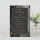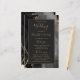Ce programme de mariage élégant et moderne présente un fond d'agate noire rehaussé de paillettes dorées factices. Le texte apparaît dans une écriture manuscrite dorée élégante et des polices copperplate sur un rectangle noir cassé.