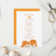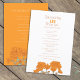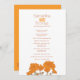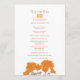 Chrysanthemum à deux faces fleur orange sur un arrière - plan blanc et un côté sur un programme de mariage arrière - plan orange. Plan floral plan botanique mariage fixe fixe. Modifiez ce programme de mariage avec votre nom, dates, libellé de la cérémonie, accompagnateurs de mariage et merci. Un programme simple mais élégant remplace simplement un exemple de texte par vos informations de mariage. Un programme de cérémonie de mariages floraux d'automne idéal. Dessin et conception par Sarah Trett pour www.mylittleeden.com et www.mylittleedenweddings.com