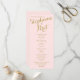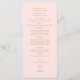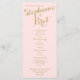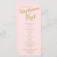 Programme de mariage avec carte à crémaillère couleur rose et or avec texte doré.