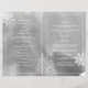 Abstrait moderne aquarelle grise cérémonie de mariage d'hiver et programme plié de fête avec une peinture à l'aquarelle peinte à la main avec la texture dans les tons de gris arbres en blanc avec la neige, les flocons de neige et le texte en blanc. Cet élégant design décontracté mariage est un modèle entièrement personnalisable, parfait pour votre mariage d'hiver.