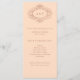 Ces élégants programmes de mariage présentent un fond rose tendre orné d'un cadre en rose gold faux orné et vintage. Vos initiales et le reste du texte apparaissent dans une couleur rose assortie.
