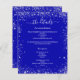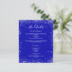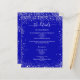 Un programme de mariage moderne et élégant / détails / chronologie. Un arrière - plan de couleur bleue royale décoré de parties scintillant faux argentées brille. Personnalisez et ajoutez vos noms et les détails du mariage. Lettres de couleur blanche. Texte des deux côtés. Ajoutez l'URL de votre site Web mariage au code QR. 1 feuille = 1 programme imprimé de bord en bord.