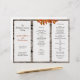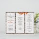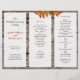 Programme de mariage en bois rustique, écorce d'arbre, feuilles d'automne à plier en trois. Papier à en-tête de qualité avec branches de feuilles rouges et fond en bois. Utilisez des modèles dans trois zones pour personnaliser votre propre programme de cérémonie. Pliez après l'achat.