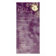 Programme de mariage violet rustique, élégant et chic avec des fleurs dorées et un script moderne.