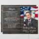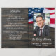 Programme de funérailles mémorial du drapeau américain des États-Unis / Programme de célébration de la vie. Ce programme de célébration de la vie patriotique présente un drapeau des États-Unis d'Amérique sur un fond en bois sombre. Personnalisez ce programme de funérailles de célébration du drapeau américain avec la photo, le nom et les dates de votre proche, le lieu de l'événement, la nécrologie, l'ordre du service et l'avis de remerciement. Ce programme de funérailles photo du drapeau américain sera un souvenir précieux. Parfait pour des funérailles militaires, un service commémoratif de vétéran ou une célébration militaire de la vie. En souvenir affectueux Mémorial militaire Drapeau américain. COPYRIGHT © 2020 Judy Burrows, Black Dog Art - Tous droits réservés. Programme mémorial du drapeau américain pour funérailles économiques.