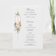 Ce joli programme botanique d'hiver comprend des bouquets de roses et de fleurs d'ivoire, des baies rouges, des flocons de neige en sapin et en or entourant un élégant étiquette d'or pour votre monogramme sur un arrière - plan gris perle pâle. Inclut les champs de texte modifiables pour votre cérémonie et les participants à la fête de mariage.