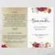 Cet élégant programme de quinceañera en espagnol présente de magnifiques fleurs dans un mélange de tons rouge, or, jaune et rose. Utilisation des détails de calligraphie moderne. Les côtés gauche (qui une fois pliés, devient l'arrière et la gauche à l'intérieur) dans une texture dorée élégante. Personnalisez le programme dans les deux côtés, en ajoutant tous les détails ou les messages que vous aimez, le nôtre est simplement un exemple. Egalement disponible en anglais. REMARQUE : ce programme arrive à plat et nécessite de plier au milieu pour assembler. Le programme valeur par défaut est recommandé. Pour des lignes de pliage propres plier doucement avec dossier osseux.