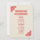 Cartons d'invitation enterrement de vie de jeune fille avec texte décoratif rose et rouge "Giddy Up Girls" et "dernier rodéo", illustration d'une rose et de bottes de cowgirl roses avec des cœurs. Le fond est blanc cassé. Le verso présente le programme.