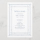 Ce programme de mariage séduisant présente une touche moderne d'art déco classique. Un cadre géométrique et orné d'un bleu poussiéreux orne un élégant arrière - plan blanc pour un look spectaculaire et vintage de programme d'accueil.