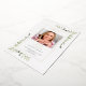 Un élégant programme de mémorial funéraire botanique personnalisé aquarelle couleur verte ordre de service avec une véritable feuille d'or sur le devant et une photo spéciale de l'être aimé. Conçu par Thisisnotme©